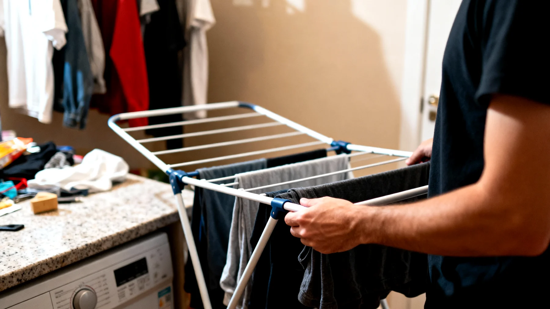 Anche il modo in cui si ripone lo stendibiancheria quando non è in uso ha un impatto significativo sulla sua longevità. Conservarlo in un ambiente asciutto è fondamentale, ma conviene anche appenderlo a parete o tenerlo in verticale, evitando il contatto continuo con il pavimento. I pavimenti tendono a essere più freddi della temperatura ambiente e questa differenza termica favorisce la condensazione proprio sulle superfici a contatto. Mantenere lo stendibiancheria sollevato riduce questo rischio e migliora la circolazione d’aria intorno alla struttura.
